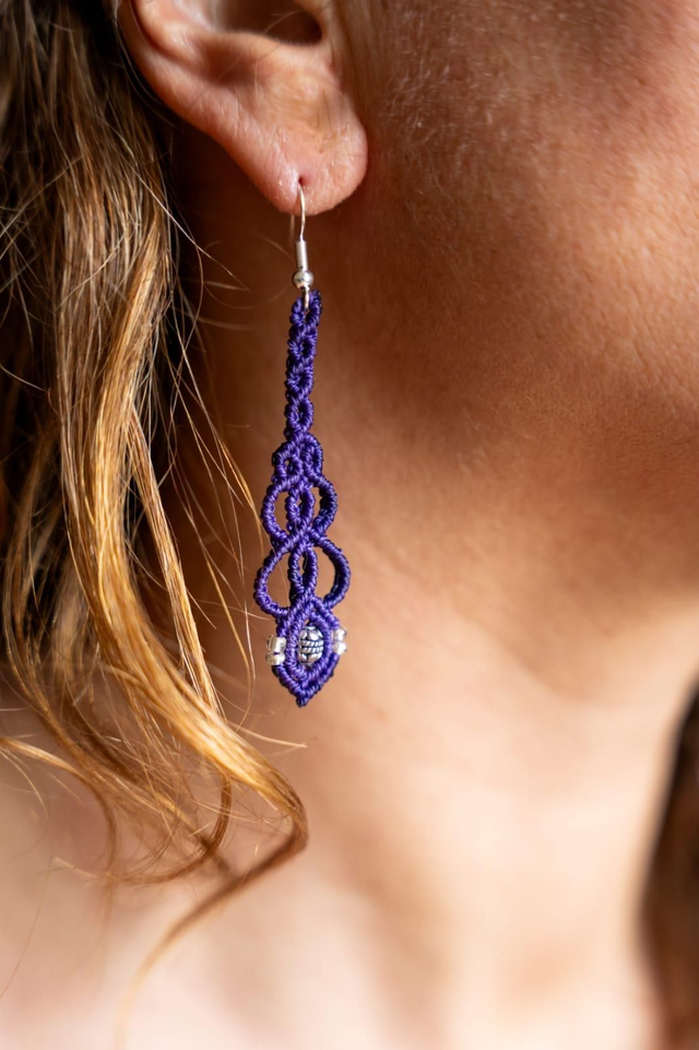 Boucles d'oreilles tout en simplicité mais originales à la fois en fil Linhasita violet perles argentées.