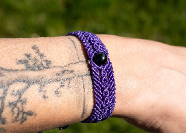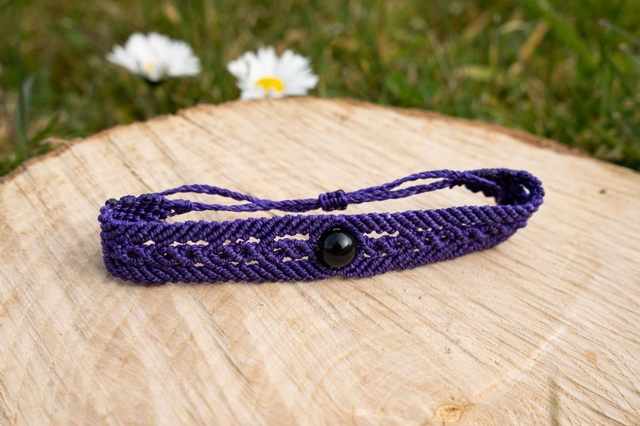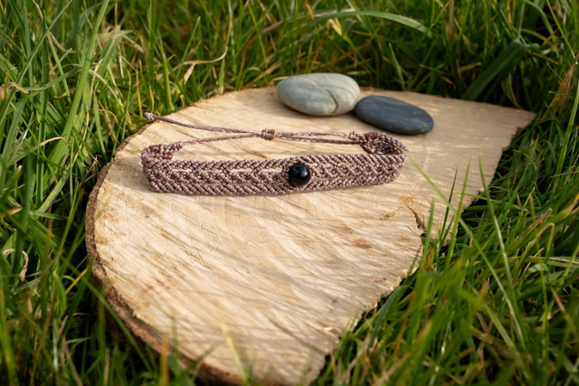 Bracelet en micro-macramé (différentes couleurs) avec perle Obsidienne Noire.