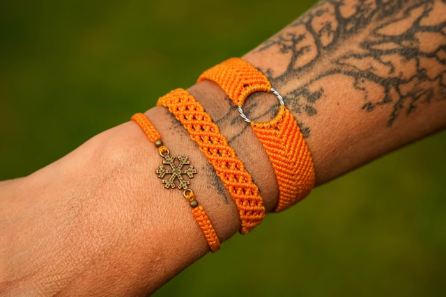 Bracelet si simple mais si joli en micro-macramé couleur orange avec son pendentif flocon de neige.