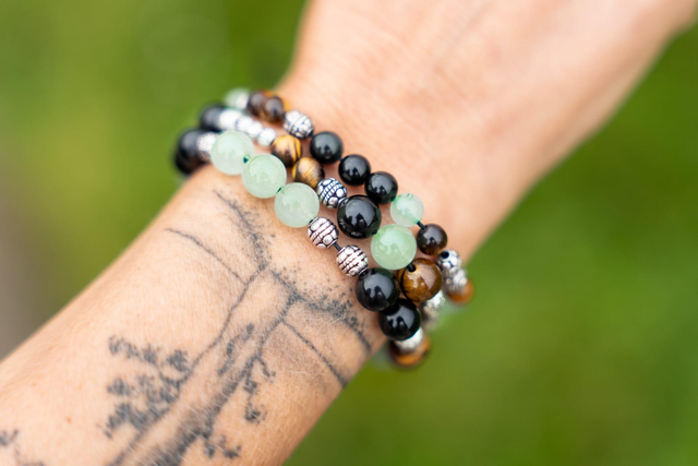 Bracelet triple Aventurine, obsidienne noire et Oeil de tigre